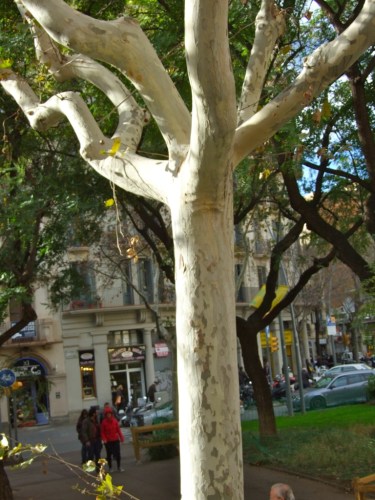 Beautiful pale plane trees adorn the centre of Barcelona