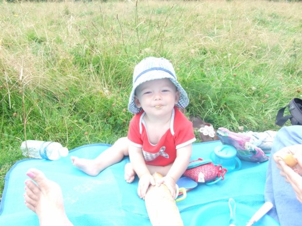 Picnic in rain. Danny plus bread.